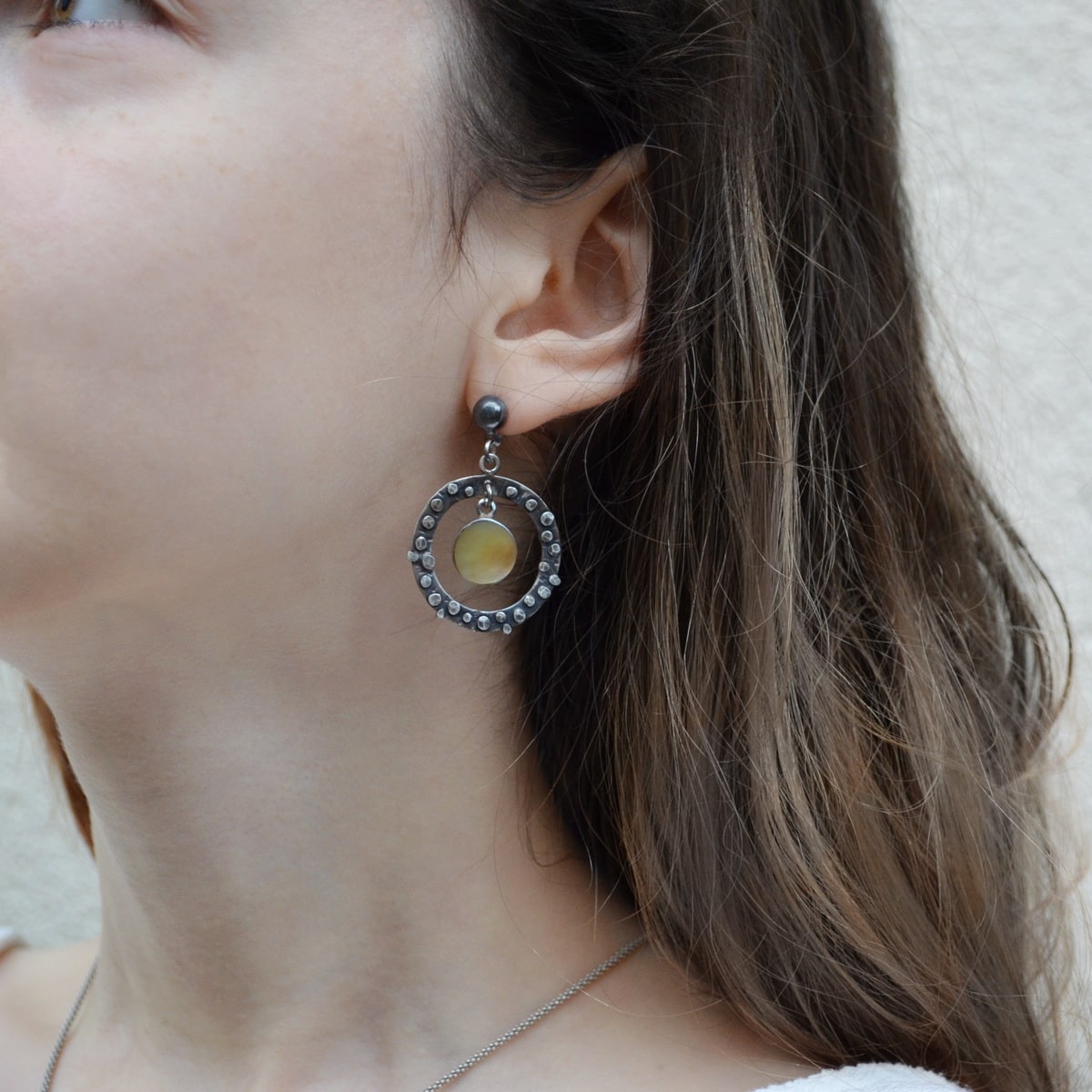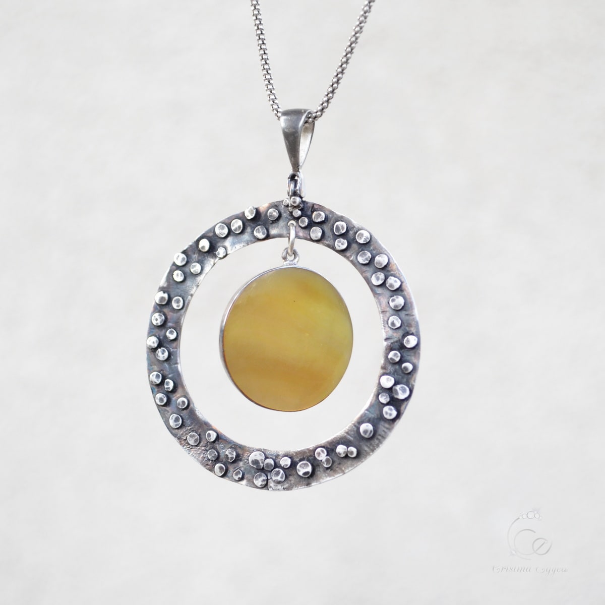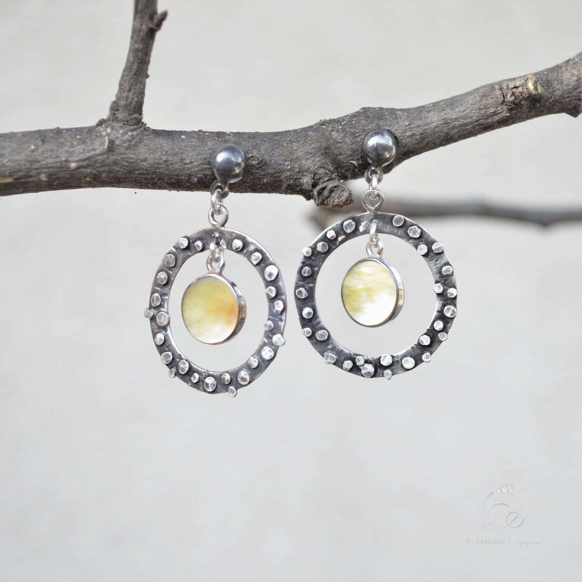 Set de bijuterii din argint și sidef. Setul este format din cercei, pandantiv si lănțisor. Este lucrat manual din argint de 925.